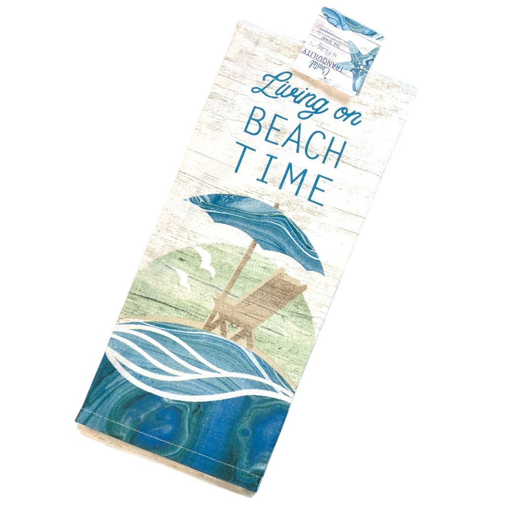 Our Beach Sayings Kitchen Towels are so lovely you might want to frame them instead of use them! This Living on Beach Time coastal inspired towel is made from 100% cotton and very absorbent. Lint-free, our beach-inspired towel is great for cleaning, polishing, drying & baking.