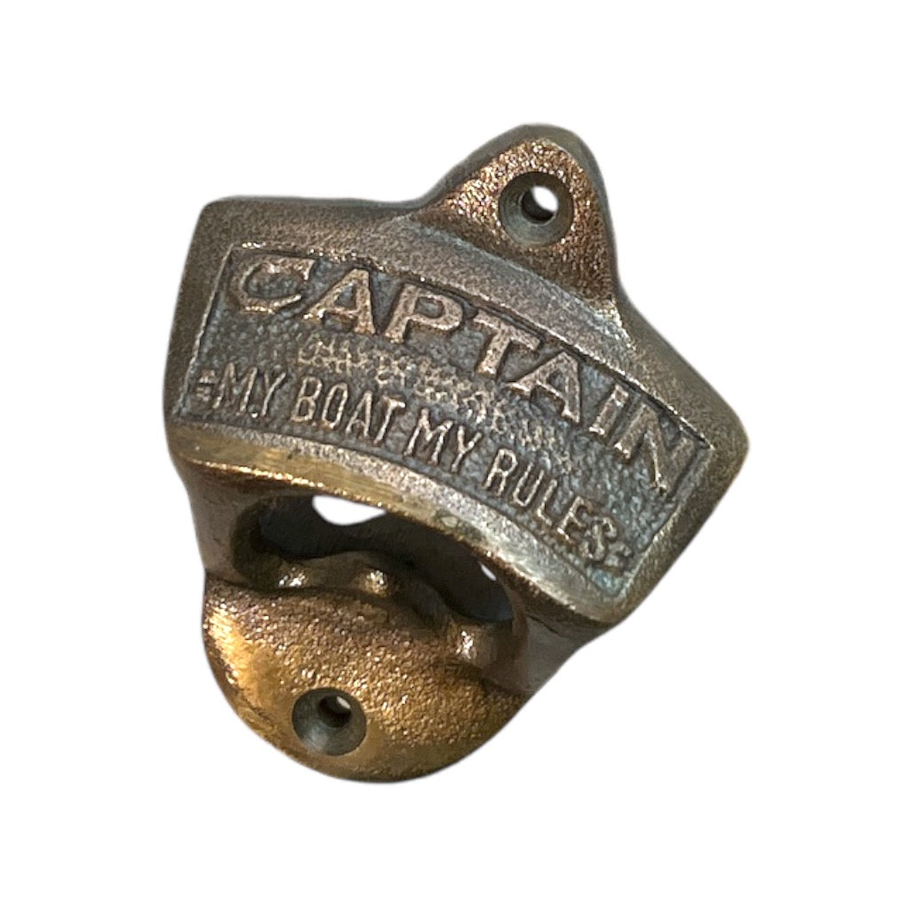 This Boat Captain Bottle Opener is the perfect addition to any boat enthusiast's collection. Made of durable cast iron and featuring a brushed bronze finish, it's both stylish and functional. With its wall mount design, it's easy to access when needed. Plus, the inscription "My boat, my rules" adds a fun touch to any space.