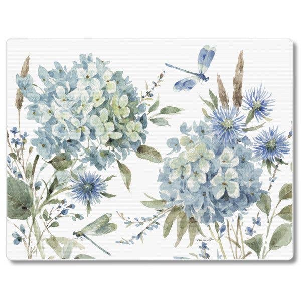 Bohemian Blue Hydrangeas 10” x 8” Tempered Glass Cutting Board