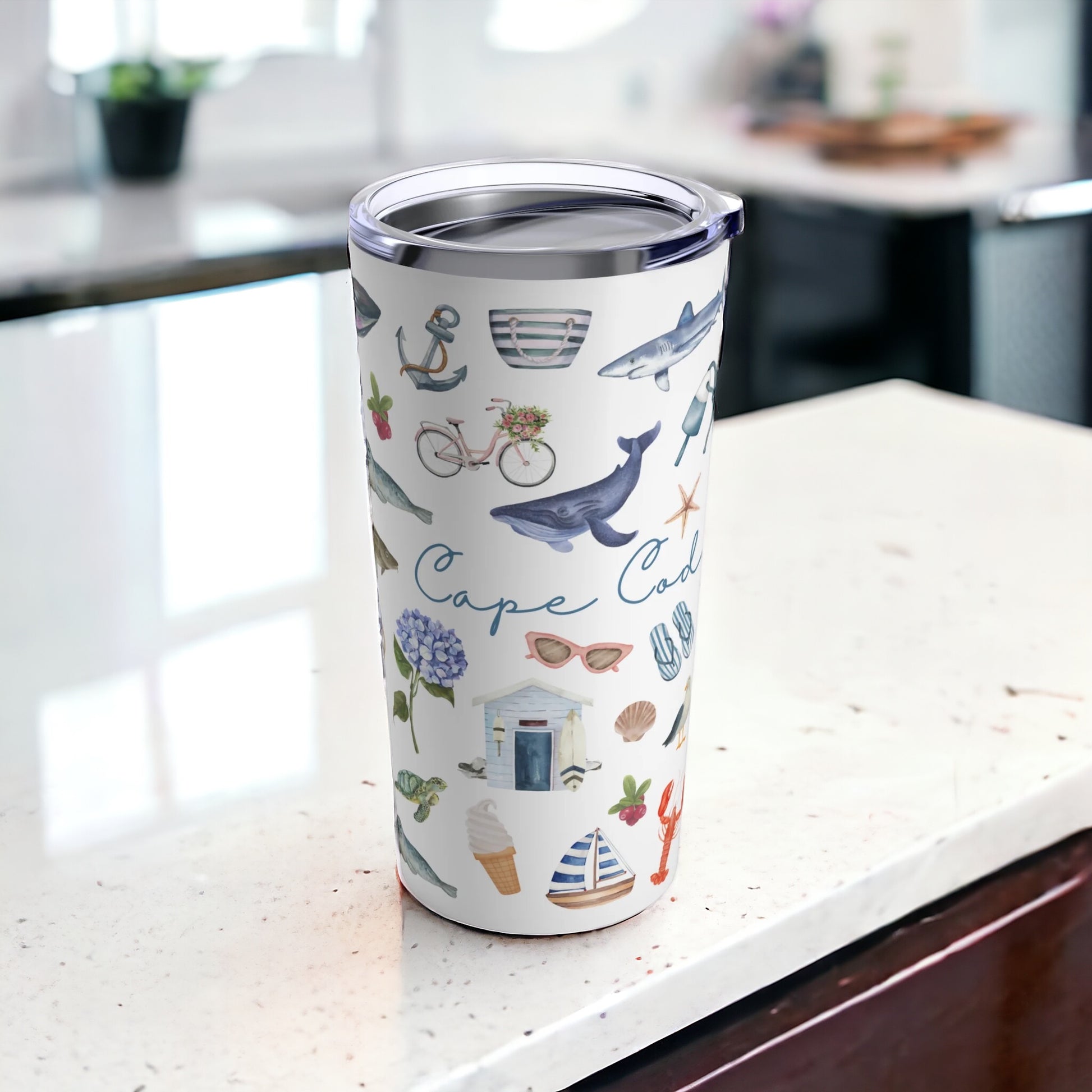 Our Cape Cod Icons Tumbler features stainless steel construction and keeps 20oz of your favorite beverages hot or cold thanks to the double-wall insulation. This beautifully designed Cape Cod travel mug provides excellent durability and it's dishwasher safe for added convenience.
