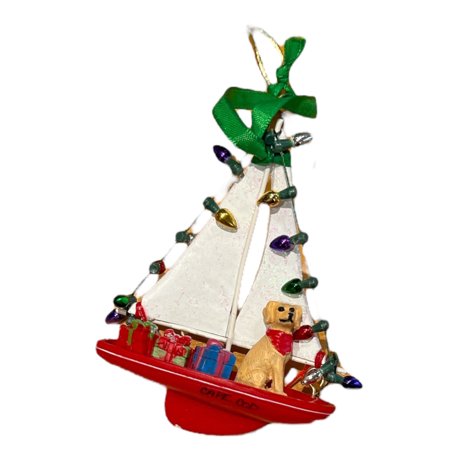 Our Cape Cod Sailing Dog Ornament is fun and whimsical, featuring a yellow dog sailing along in a cute sailboat decked out in colorful lights. If you have a yellow lab, how much more perfect could this Cape Cod Christmas ornament be for your tree or anywhere you'd like to hang a reminder of Cape Cod.