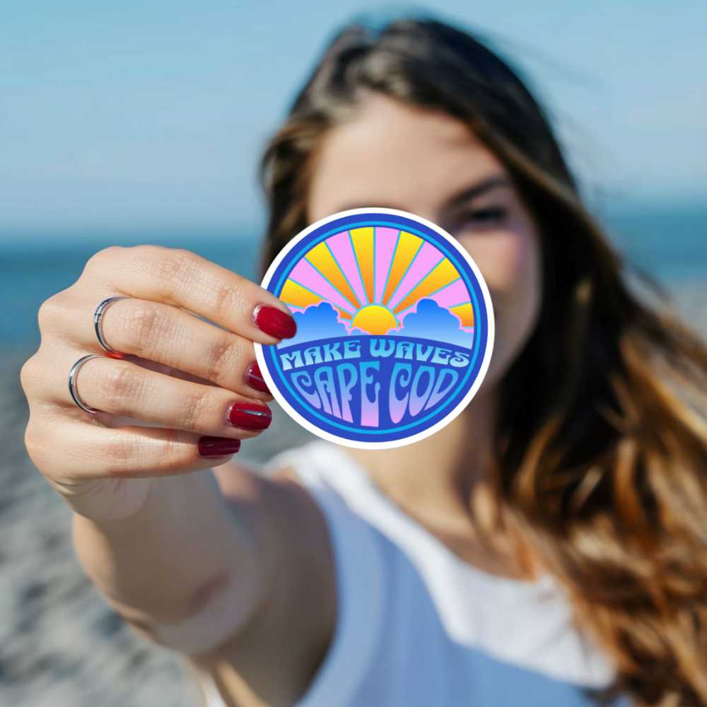 Make a splash with the Make Waves Cape Cod Groovy Sticker! This waterproof vinyl sticker is both durable and versatile, making it perfect for use both indoors and outdoors.