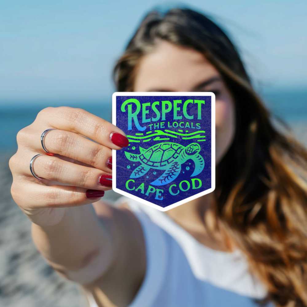 Show your love for Cape Cod with the versatile and durable Respect the Locals Sticker! This waterproof vinyl sticker features a gradient design, a vibrant neon green turtle, and can be used both indoors and outdoors. Don't miss out on this must-have sticker for any local or visitor.