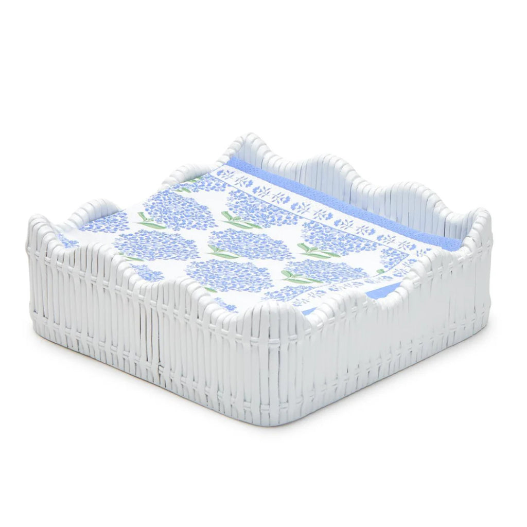 Elevate your hosting game with our Scalloped Edge Cocktail Napkin Holder. Keep your cocktail napkins organized and add an exquisite touch to your events with its captivating basket weave design and durable resin construction. Ideal for both casual gatherings and formal occasions.
