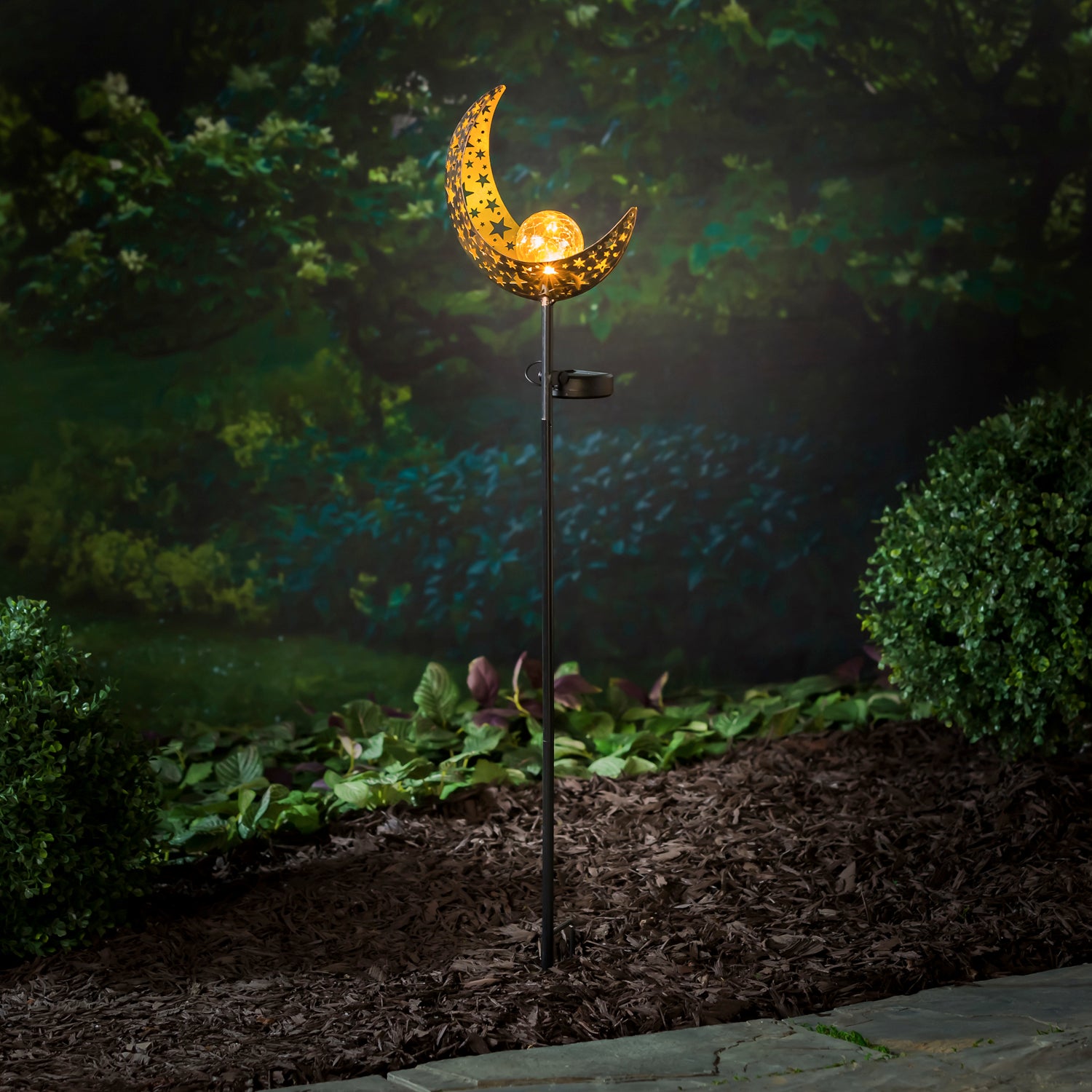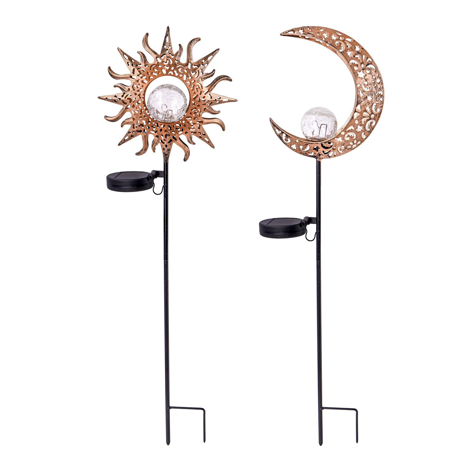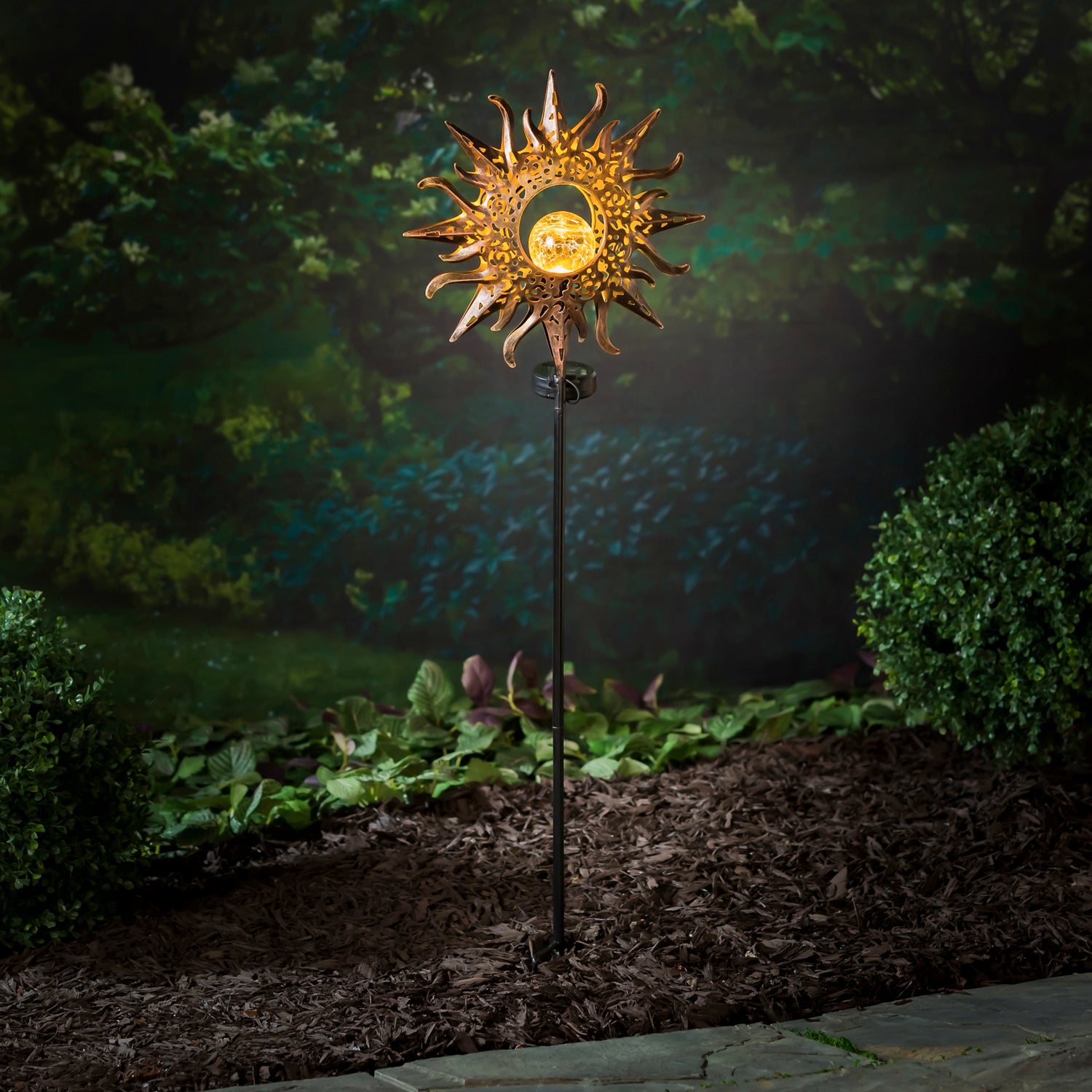 Enhance any outdoor space with our Solar Garden Stake - Celestial Design, offered in either a Sun or Moon option. Each piece showcases stunning, handblown glass with a mesmerizing crackled effect that becomes even more captivating after dark. Simply place the stake in a sunny spot and allow the integrated solar panel to charge for 6-8 hours to enjoy a beautiful array of colors and a comforting glow in your garden or along a pathway. Our stake is the perfect addition to brighten up any space – both day and night!