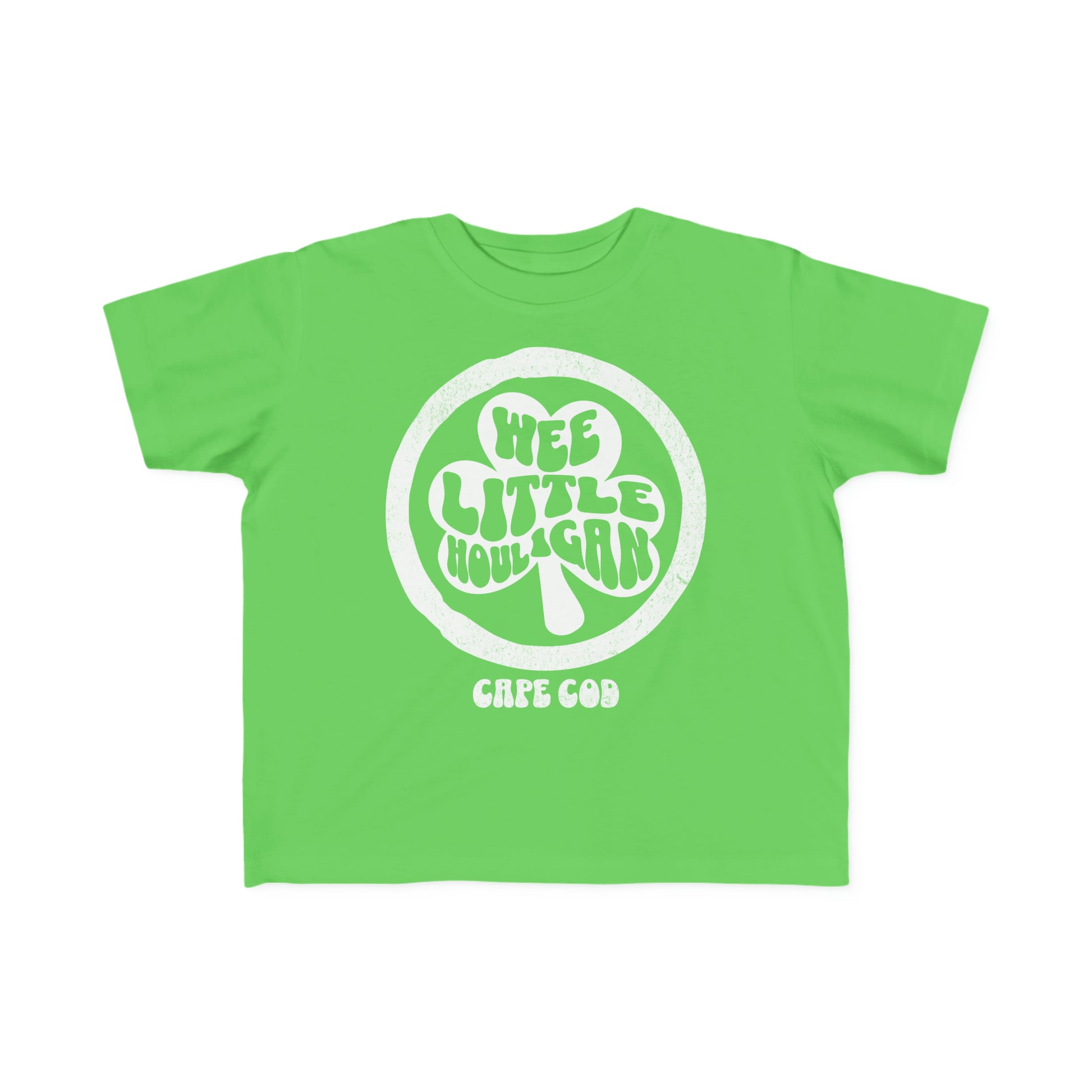 Ignite the St. Patrick's Day spirit in your little one with our irresistibly cute Wee Little Hooligan Cape Cod Toddler T-shirt! Created on Cape Cod, this darling shirt boasts a lively apple green color that perfectly captures the festive vibes. Crafted from a durable yet soft Rabbit Skins 3322 jersey, it promises all-day comfort for your tiny tot.