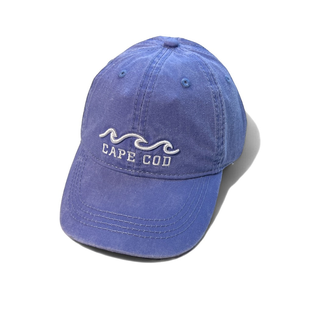 Our lovely Women's Baseball Hat is just what you need for those sunny, windy, and humid Cape Cod days. This ladies Cape Cod cap features the traditional front facing brim, 6 panel construction, and adjustable buckle strap-back to adjust to your sized head. The beautiful periwinkle blue with wave design embroidery on the front and rear of hat makes this the perfect choice for someone who loves Cape Cod.
